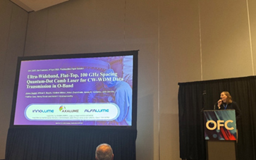 在 OFC 2025 的最后一場(chǎng)會(huì)議上Janina Rautert 博士登臺(tái)介紹了我們?cè)诹孔狱c(diǎn)激光技術(shù)方面的最新進(jìn)展——這一次再次被選為享有盛譽(yù)的截止日期后論文會(huì)議。